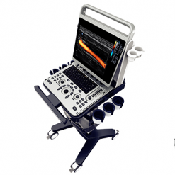 Light Weight (7,5kg). 15″ LED (rotatable 0? – 30?). Removable battery, 120 minutes in active mode. Dual transducer ports. Ergonomic trolley (accessory box, printer & probe holders). Full Screen display Mode. High frequency linear probe (up to 18MHz). 2D Steer, Super Needle, B/BC. Vascular and MSK solutions.